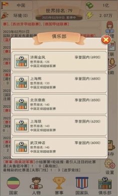 3、玩家需要带领自己的旗下球队不断的发展,从一个小比赛开始,最终到世界杯。