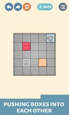 1.不断的进行箱子的推动,能够把不同形状的箱子融合在一起。