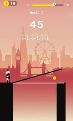 游戏玩法非常有趣,点击蓄力制造与面前的峡谷相对长度的木板;