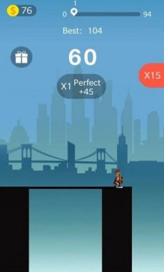 游戏玩家必须操纵跨越差距游戏中的奸险小人,使他从一个阶梯海外木板进到到另一个阶梯,模板是会的,仅有把握了模板的运动规律,跨越差距游戏操纵好奸险小人的短跑间距好速率就能成功根据木板进到到下一个阶梯。