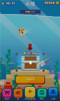 3、你可以升级你的鱼缸和饲料,让你的鱼升级进化,成为海洋中的强者。