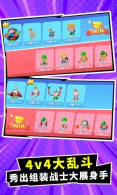 1、在乱斗模式中大展身手,一战成名,还有休闲模式,收集2265各种传说史诗部件,体验超级玩具。