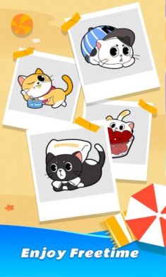 2、简单的游戏玩法,合并消除2只不同的猫咪创建新品种的猫咪。