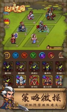 诸葛亮、曹操、赵云、吕布、貂蝉随意驱,英雄豪杰尽在掌握,九格阵地,阵型千变万化。