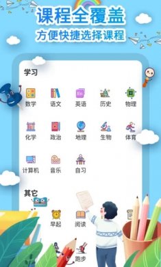 1、自定义课表:每周课表,自定义设置上课时间与节数。